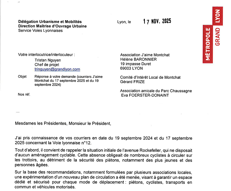 Courrier réponse des associations de Montchat 24 novembre 2025